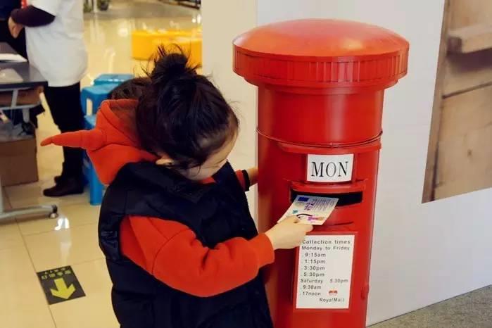小朋友将画好的明信片投进邮筒,期待被送到叙利亚