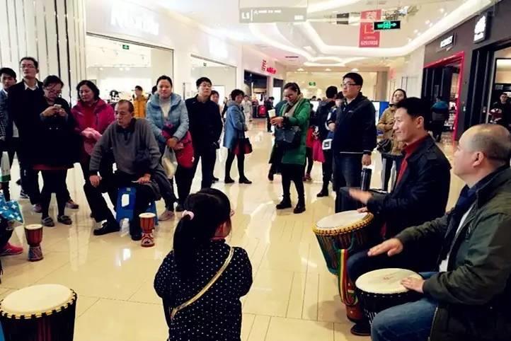 欢乐鼓表演成为了商场内最热闹的区域