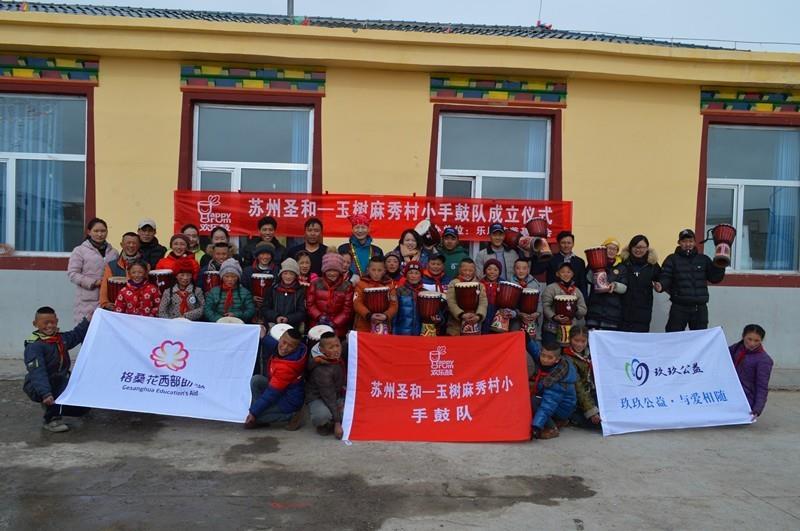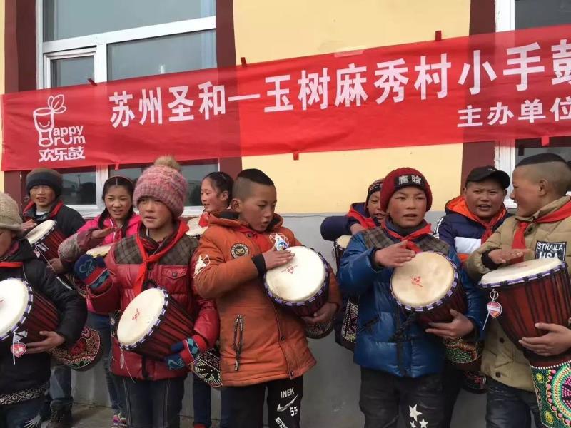 2017年3月28日,乐助慈善基金会“欢乐鼓—青少年快乐成长计划”第一次走进玉树,为40个玉树曲麻莱县和巴干乡的孩子带去了“欢乐鼓”。