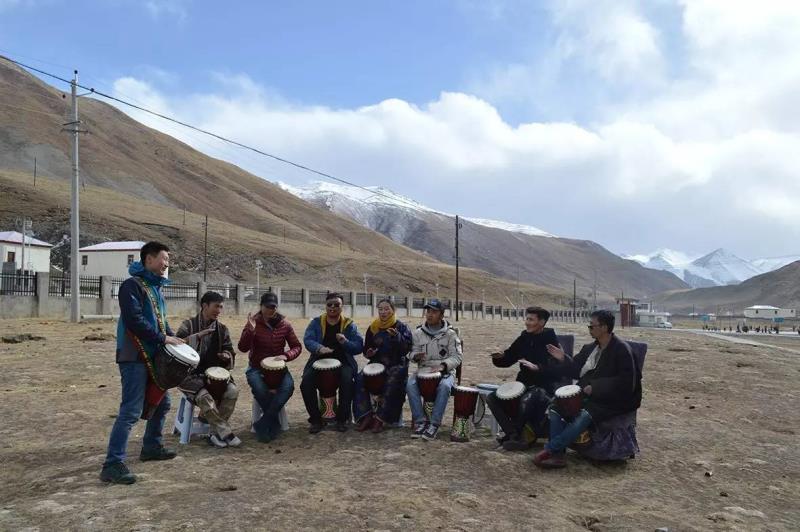 隔日,乐助欢乐鼓项目负责人司长城老师对两所的老师进行了“欢乐鼓”的集训,同样能歌善舞的藏族老师们学起非洲鼓的演奏可谓毫不费力。大家在雪山旁欢快的演奏声传遍蓝天、白云、雪山、高原……