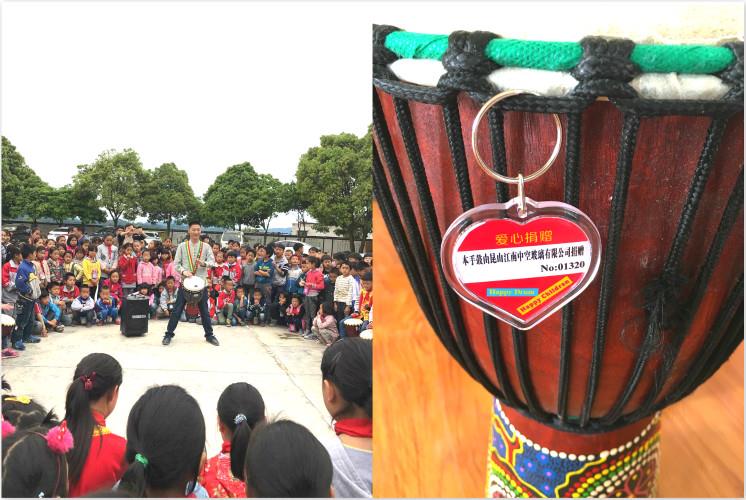 司长城先生在现场也转述了爱心企业带来的祝愿,他们希望通过为学校捐赠欢乐鼓队,丰富孩子们的学校生活,在音乐的感染和熏陶下建立自信,滋养心灵,快乐成长。他现场还带领爱心志愿者们用一场精彩纷呈的手鼓表演点燃了孩子们的激情,孩子们纷纷表现出强烈的好奇心和参与期待。我们也相信承载着每一位爱心人士期冀和祝福的手鼓,一定能陪伴孩子们度过一个快乐的童年!