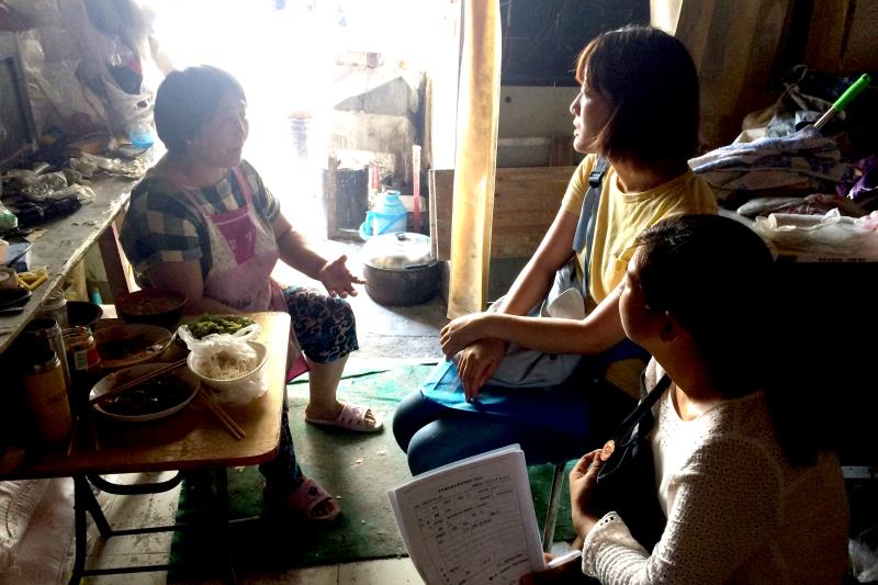 基金会同事和志愿者在和姑姑聊天