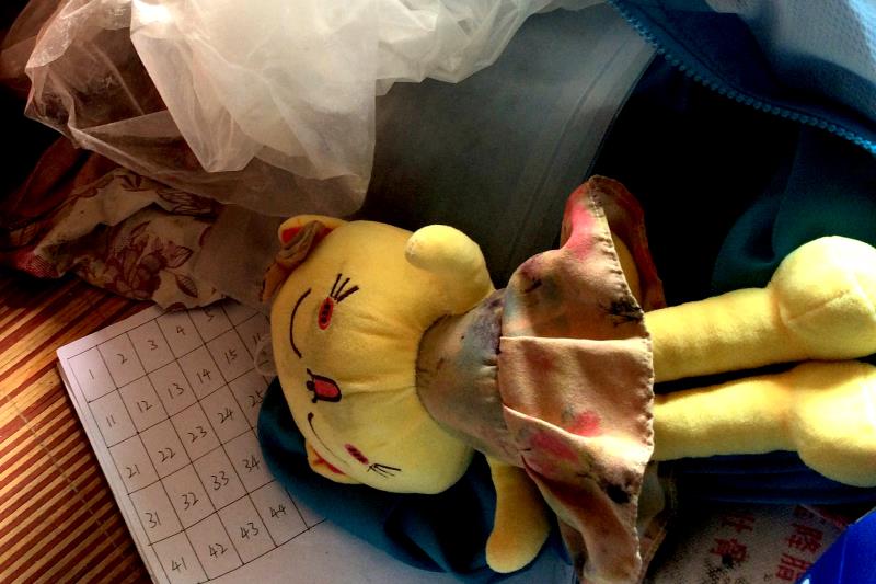床上有着好心人送的旧布娃娃,早已被风铃玩脏了;不合脚的塑料凉鞋底部磨得漆黑一片,安静地躺在床边的地上……