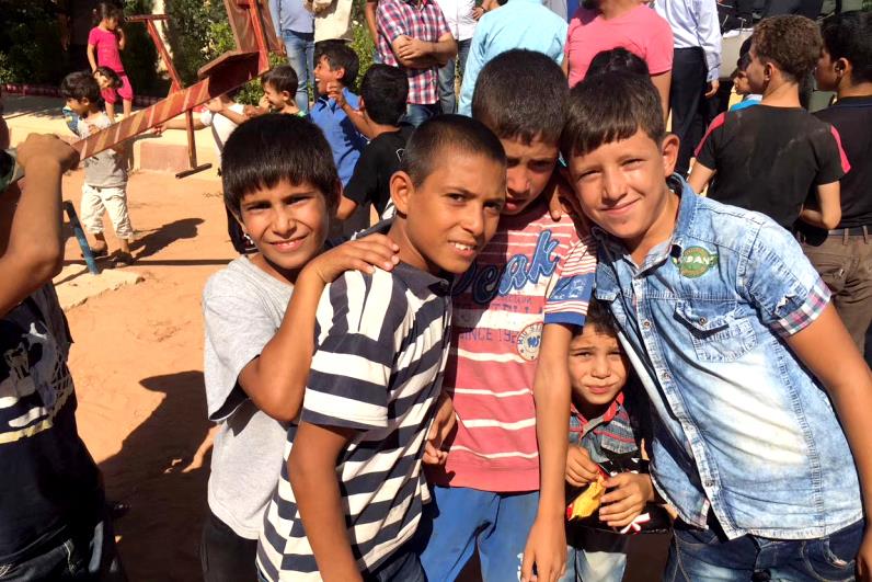 难民营里的大人们的眼神中流露出来的更多是悲伤、恐惧和迷茫。而不谙世事的孩子们则三五成群地在院子里争抢着荡秋千、玩跷跷板等娱乐设施……从孩子们爽朗的笑声和清澈的眼神中,我们看到了叙利亚的希望与未来——