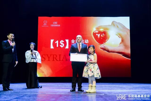 乐助慈善基金会创始人庄志先生向大家介绍了【1$】项目,并与中国红十字基金会副理事长刘选国先生、叙利亚大使穆斯塔法博士共同开启了启动仪式。叙利亚大使穆斯塔法博士表示了对项目高度的赞扬和美好的期望,并代表叙利亚儿童向所有参与【1$】项目的爱心人士表示了崇高的谢意。