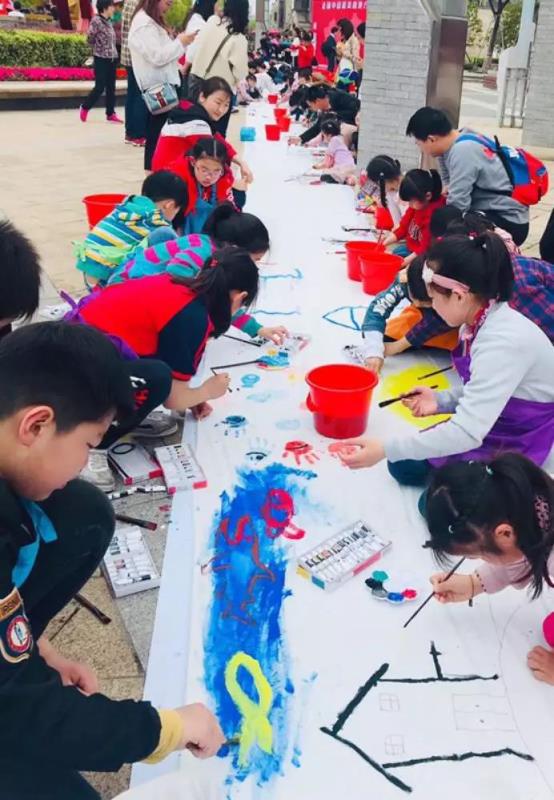 活动现场,江苏BJ40越野战队倾情助阵,爱心鼓友欢聚苏州为公益事业擂鼓助威,百名爱心少年儿童挥毫泼墨为中国公益旅游地图绘出百米画卷!