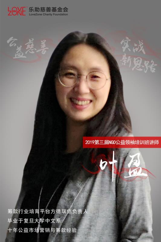 她曾于Reader's Digest任中文版杂志编辑,后加入上海联劝基金会创始团队负责传播与公众筹款模块,从0到1打造联劝机构品牌与“一个鸡蛋的暴走”等品牌筹款活动,为阿里巴巴、加多宝等企业以及中国扶贫基金会、SEE基金会等基金会提供传播策划与筹款咨询服务,拥有丰富筹款实战与咨询经验。本次培训班,她将系统介绍基本的筹款理念和市场营销策略等,助力学员掌握分析自身优势资源制定筹款策略及方法,知识点涵盖从项目到产品、产品包装及传播推广、渠道选择、捐赠人维护、资源投入与评估、筹款伦理。
