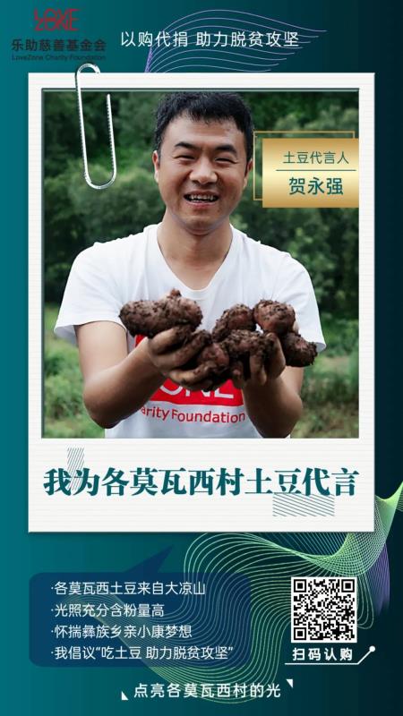 我们计划为各莫瓦西村村民们包销20万斤新土豆。现开放招募各莫瓦西村土豆代言人,倡议大家以购代捐,助力各莫瓦西村民如期脱贫!